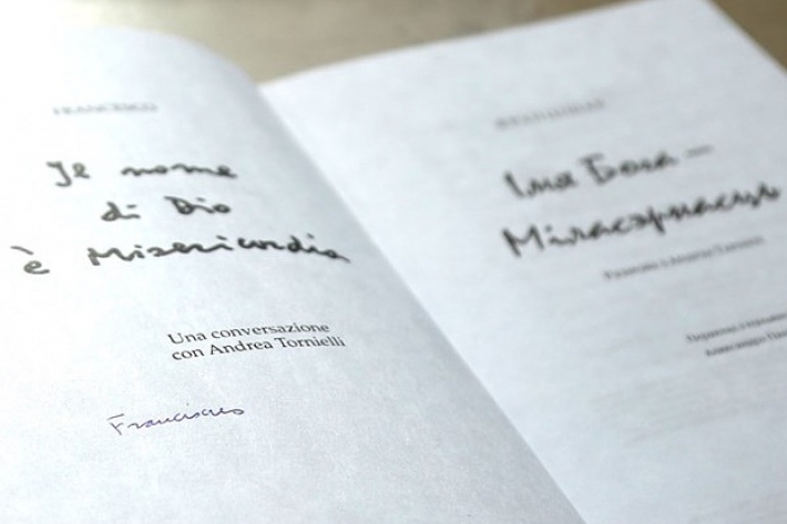 Понтифик оставил автограф на двух экземплярах.