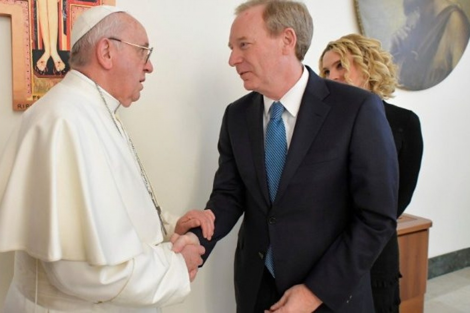 Папа Римский Франциск принял на частной аудиенции президента корпорации Microsoft Брэда Смита. Его сопровождал архиепископ Винченце Палье, председатель Папской академии жизни.