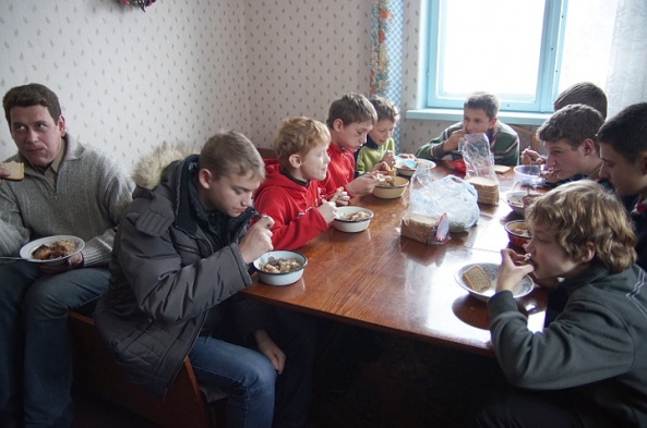 В деревенских условиях парни ночевали, готовили себе еду на костре, умывались снегом. Мальчики разных возрастов - от 11 до 15 лет - вместе шли в 5-километровом походе, отправлялись в ночное приключение на поиски «украденного» завтрака, с огромным удовольствием играли в футбол на снегу, традиционные скаутские игры и, конечно, молились. Чтобы провести Святую Мессу, на «зимник» к скаутам приехал викарий гомельского прихода ксендз Доминик.
