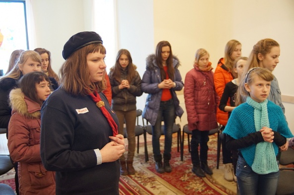 Первые 12 девочек, которые захотели стать скаутками, образовали два «копья». А «звязовой» стала уже опытная скаутка, студентка Оксана Шимкович. На первой встрече они разучили с девочками несколько скаутских игр, распределили задания на ближайшее время и помолились.