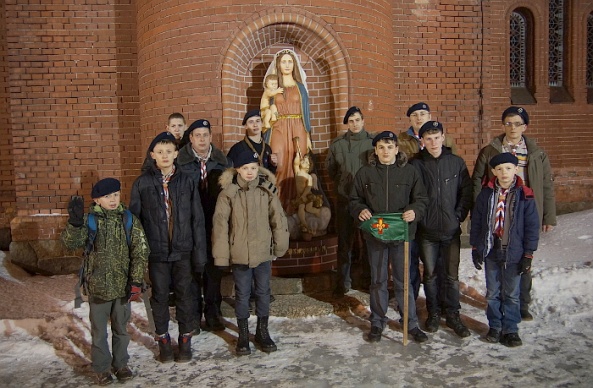 24 февраля в Борисове прошел традиционный зимний праздник белорусского скаутского движения, практикующего педагогику FSE - Федерации скаутов Европы. На «Дзень братэрскай думкі» съехались около сотни католических скаутов со всех уголков страны. В частности, от гомельского прихода в ДБД участвовали и мальчики, и девочки, и их отцы, недавно вступившие в скауты. Сопровождал гомельчан викарий прихода ксендз Доминик.