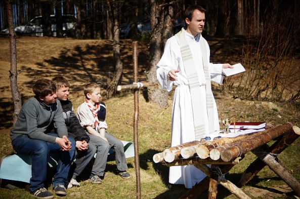 Ребят также ждали традиционные веселые скаутские игры и неожиданные встречи: с ежиком, зайцем, ужами и ящерицами. Завершился «Весенник» самым главным событием: Святой Мессой в лесу на берегу реки. Для Евхаристии скауты изготовили алтарь и крест, а провел Мессу гомельский викарий отец Доминик.