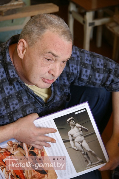 Евгений говорил, что работает для Бога, веря, что Он руководит его рукой, так же как делал это с Микеланджело. Изображения Иисуса Христа и этого творца эпохи Возрождения висели на стене маленькой мастерской гомельского скульптура.