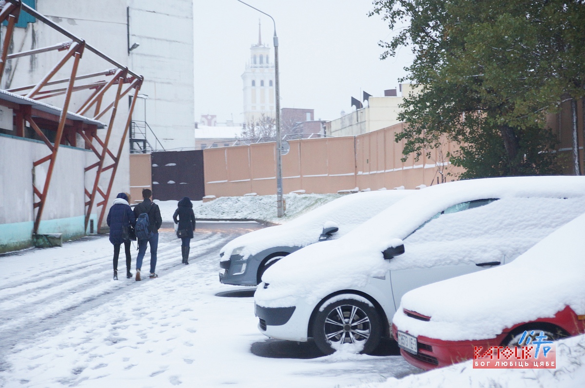 Утро 26 октября стало необычным: в Гомеле и других населенных пунктах Беларуси выпал снег! За окном была настоящая метель, и опавшие осенние листья оказались под сугробами высотой до пяти сантиметров.