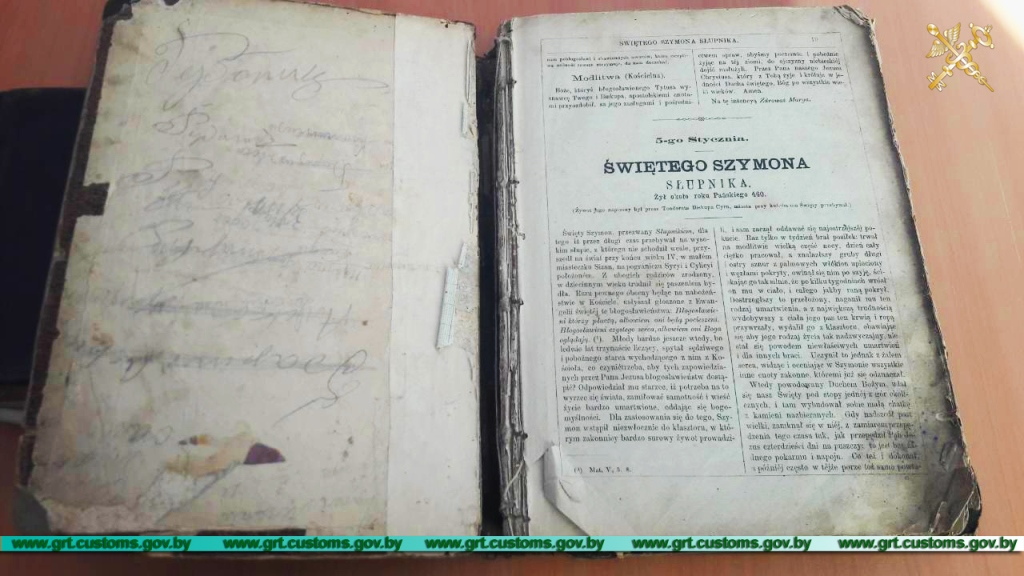 Очередной предмет старины хотели вывезти из Беларуси, но таможня не дала добро. 3 марта Гродненская региональная таможня сообщила о пресечении вывоза за границу книг, который были в Варшаве в 1874, 1903 и 1906 годах. Экспертиза выдала заключение о том, что книги представляют культурную ценность, потому что были отпечатаны более 100 лет назад.