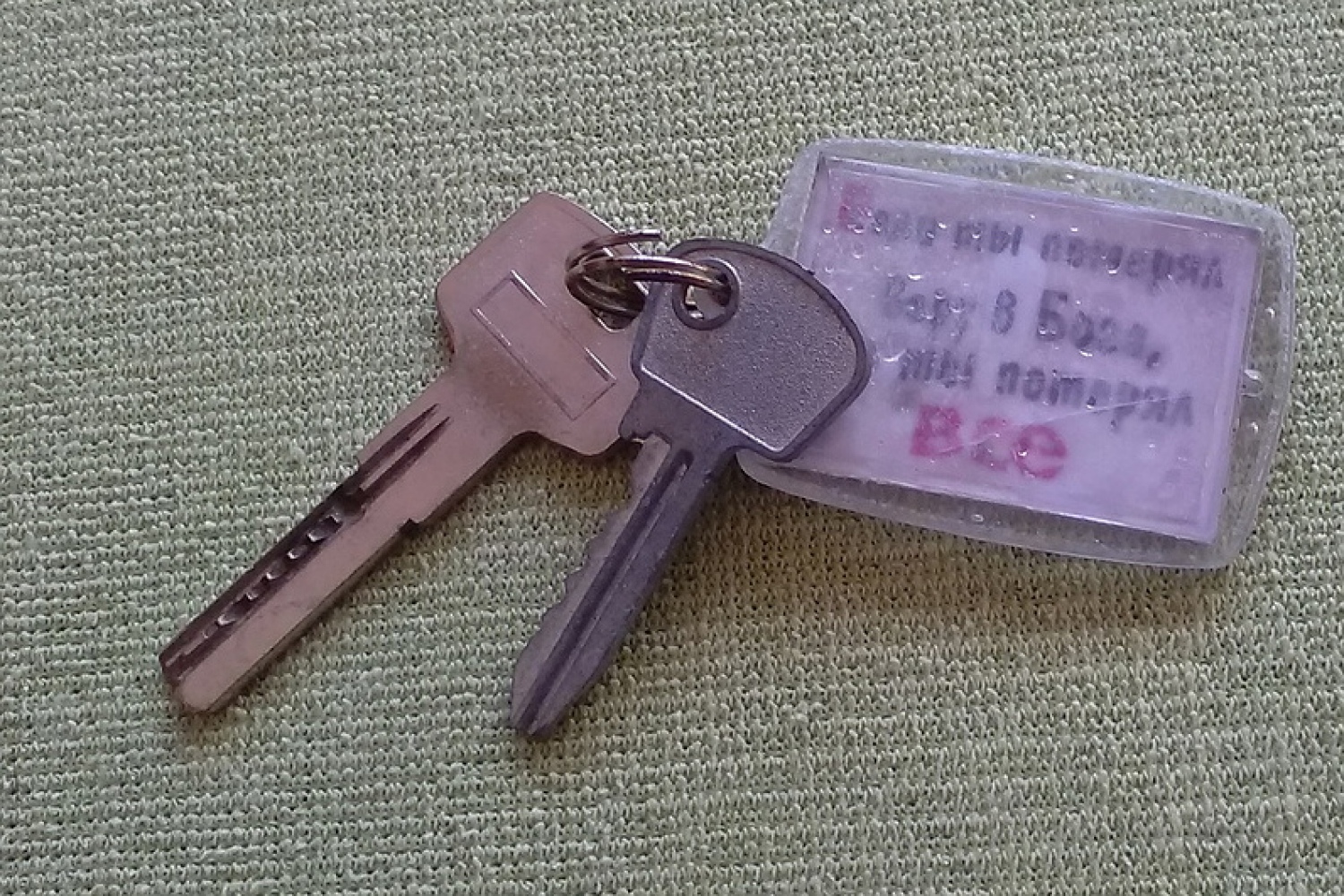 К сообщению приложено фото с двумя небольшими ключами и простым пластиковым брелком, на котором вместо номера комнаты от руки написана фраза. Вот ее полный текст: «Если ты потерял веру в Бога, ты потерял все».