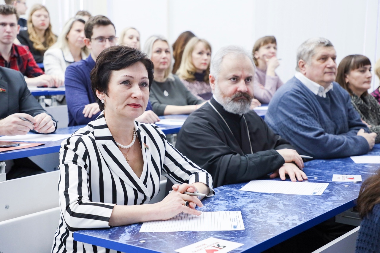 Назавтра, 21 февраля они помолились в православном храме, после чего, к Международному дню родного языка, в университете прошел традиционный «Купаловский диктант», также приуроченный ко дню основания вуза. Судя по фото, среди участников был православный священник.