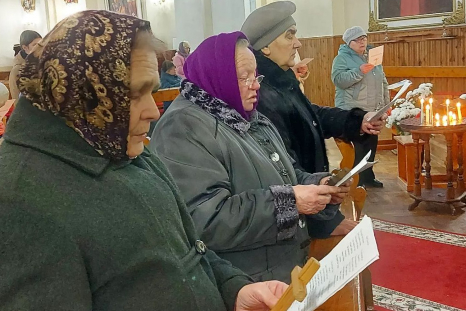 Фото — иллюстративное. На снимке люди пожилого возраста молятся в костёле. Фото со страницы прихода в Ворнянах.