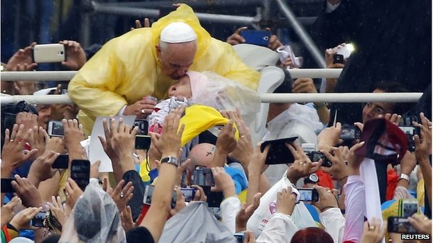 Обращаясь к огромному числу верующих, во время Мессы в Маниле Папа еще раз попросил их продвигать Евангелие на Филиппинах и во всей Азии, чтобы красота сотворенного Богом мира не была искажена несправедливостью, коррупцией и злоупотреблениями. Santo Niño - Младенец Иисус - находится рядом с чумазым ребенком, прыгающим возле грязной лужи; Santo Niño стоит рядом с бездомным, который спит на улице, улёгшись под велосипедом, чтобы не украли: такие красочные картинки Папа Франциск нарисовал в своей проповеди, чтобы вознести на алтарь Божий эти социальные «отбросы» филиппинских окраин. Santo Niño пришел в этот мир для того, чтобы он вновь стал «восхитительным садом» и не был изуродован грехом, последствием которого являются «социальные структуры, увековечившие бедность, невежество и коррупцию».