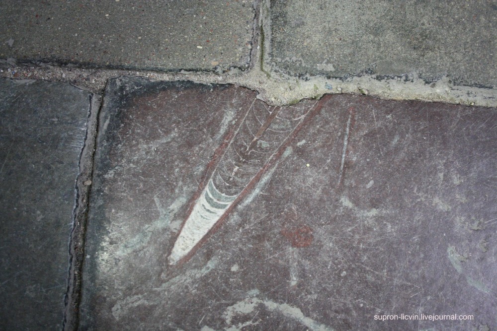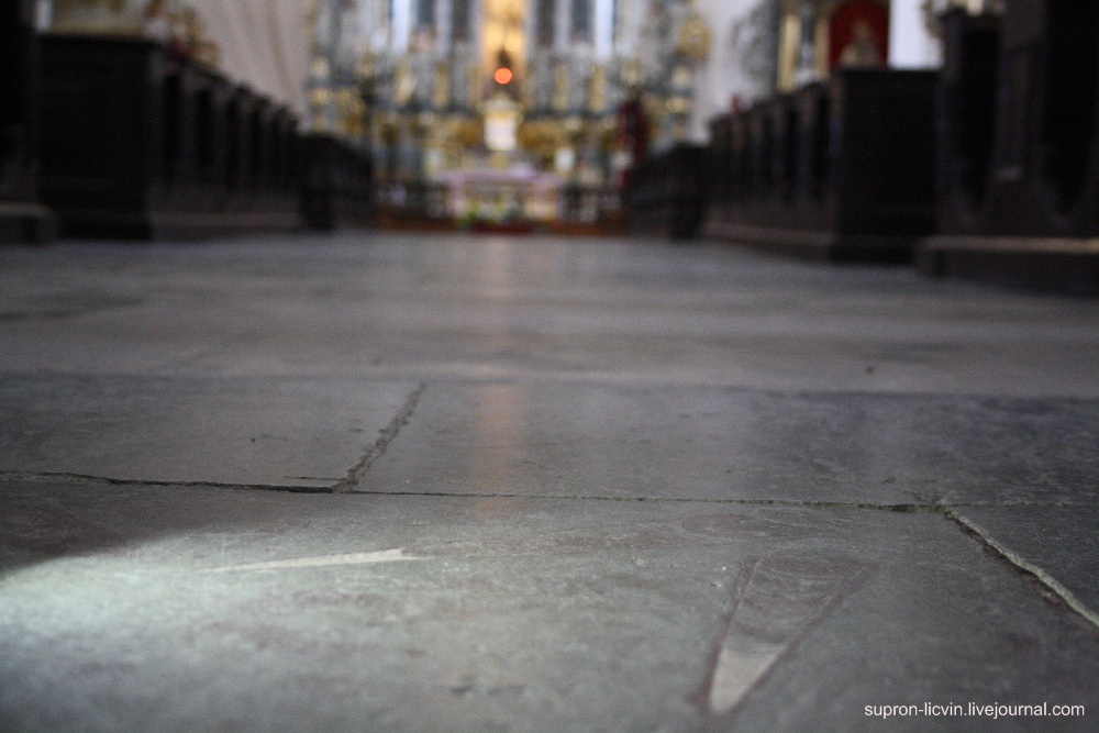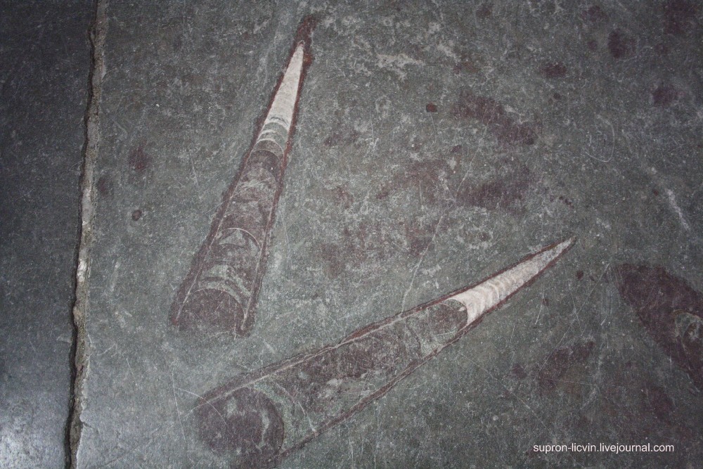 На полу Фарного и Бернардинского костелов Гродно местный блогер и историк Мечислав Ян Супрон заметил плиты, на которых видны окаменелые раковины головоногих моллюсков, живших 450 млн лет назад.
