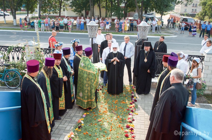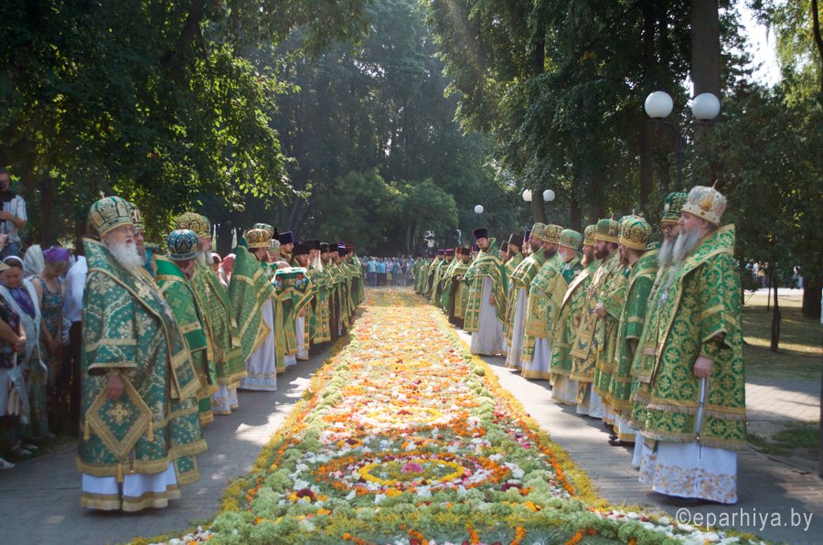 Также «ковровой» дорожкой из живых цветов главу БПЦ встречали в Ветке, куда приехал Митрополит Павел после торжеств в Гомеле. 12 августа в честь 25-летия Гомельской епархии высокий гость возглавит Литургию и чин закладки храма в честь святого мученика Иоанна Воина в Жлобине.