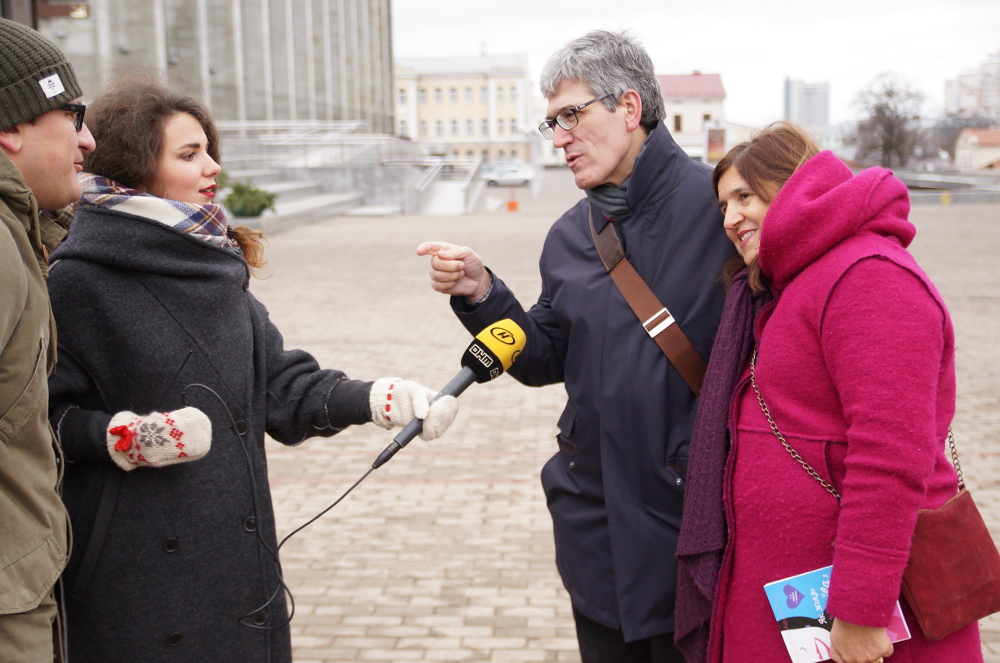 Экскурсия по Минску. Стоим возле Ратуши, известный историк рассказывает об этом месте. Где-то на башне часы бьют 12.00. «Ангел Господень», - напоминает Хосемария. Мы становимся кругом и молимся, кто на каком языке. Среди нас католики, как и мы, но многие (и мы не исключение) стыдливо оглядываются - а что подумают люди, туристы же вокруг? Позже мы можем заехать куда-нибудь перед презентацией и выпить кофе или чая, поесть, но Хосемария просит подъехать в храм, чтобы полчаса там помолиться в тишине...