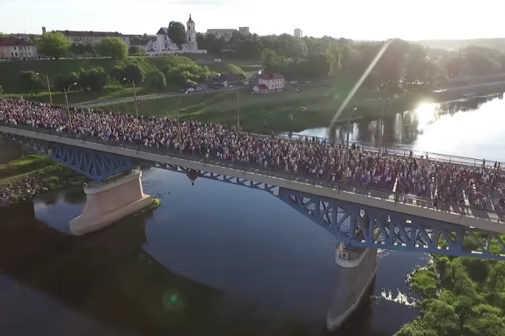 21 июня в Youtube появилось красивое видео Процессии Божьего Тела в Гродно, снятое с помощью квадрокоптера. Напомним, 15 июня около пяти тысяч католиков вышли на процессию Божьего Тела и прошли по центральным улицам Гродно: от Фарного костела по улице Карла Маркса к Бригитскому костелу. А оттуда - к Бернардинскому костелу и к Францисканскому костелу через старый мост.