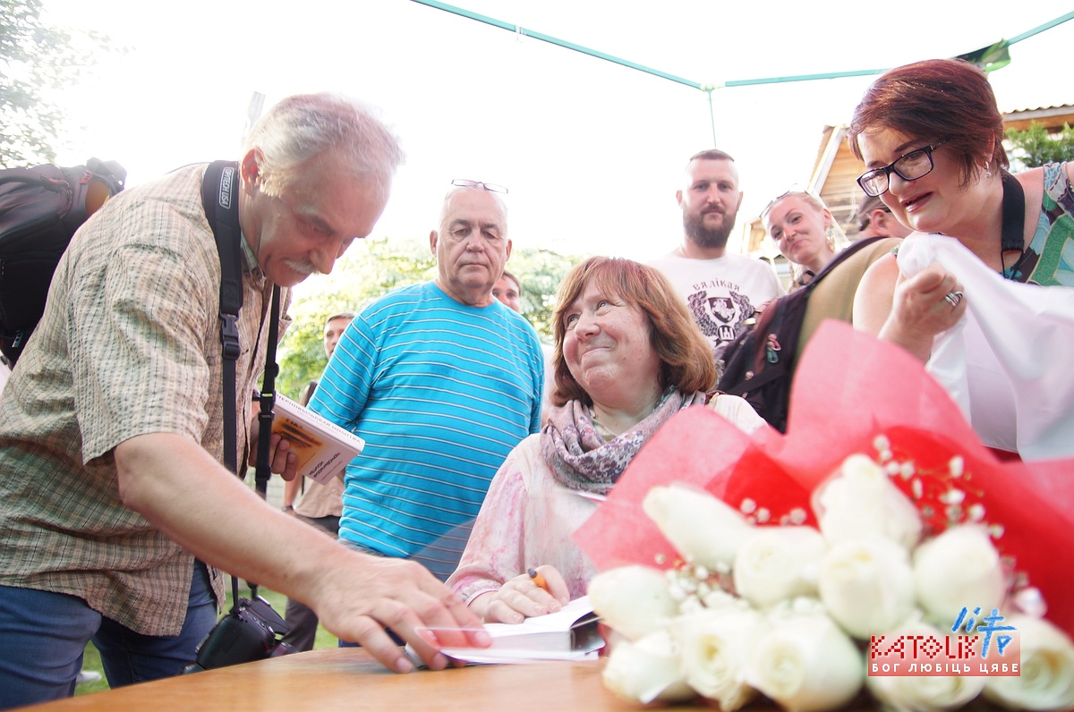 Католики подарили Алексиевич в Гомеле Библию и «добрую» кружку