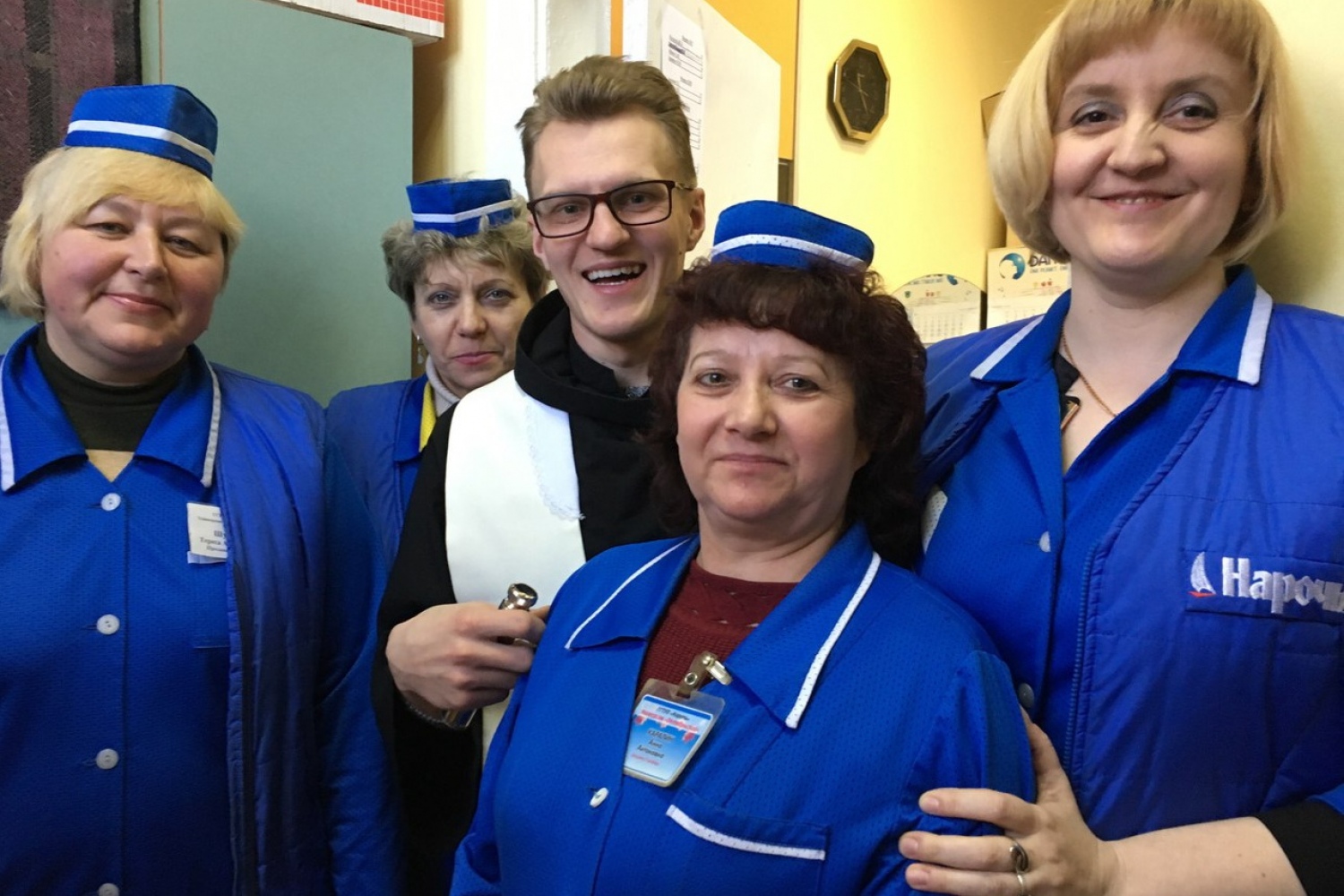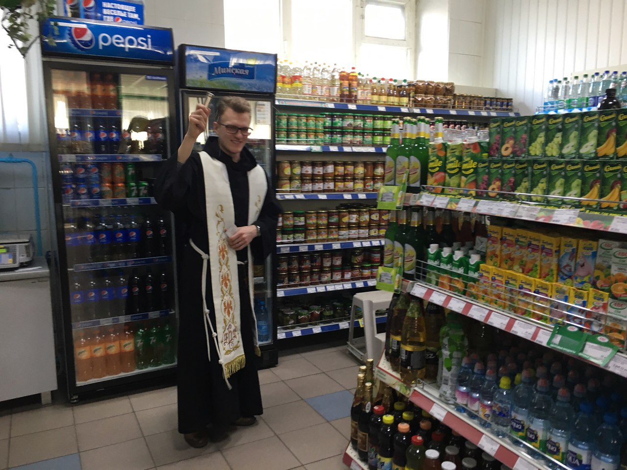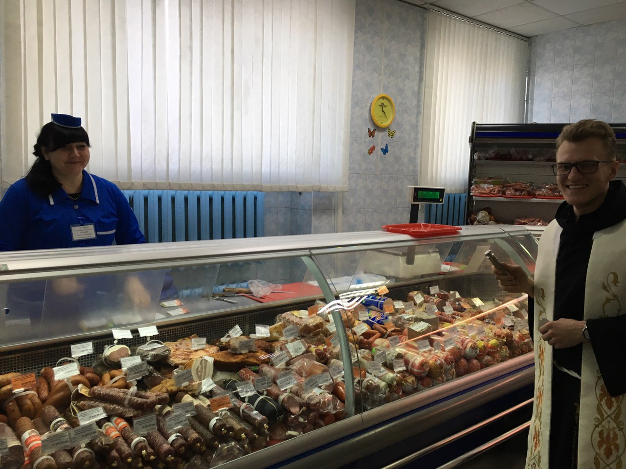 Душепастырь францисканской молодежи отец Павел Романчук OFM Conv посетил с душепастырским визитом... продовольственный магазин в Гродно! Католический священник помолился вместе с продавцами и окропил освященной водой помещения: административный кабинет, торговый зал, склады.