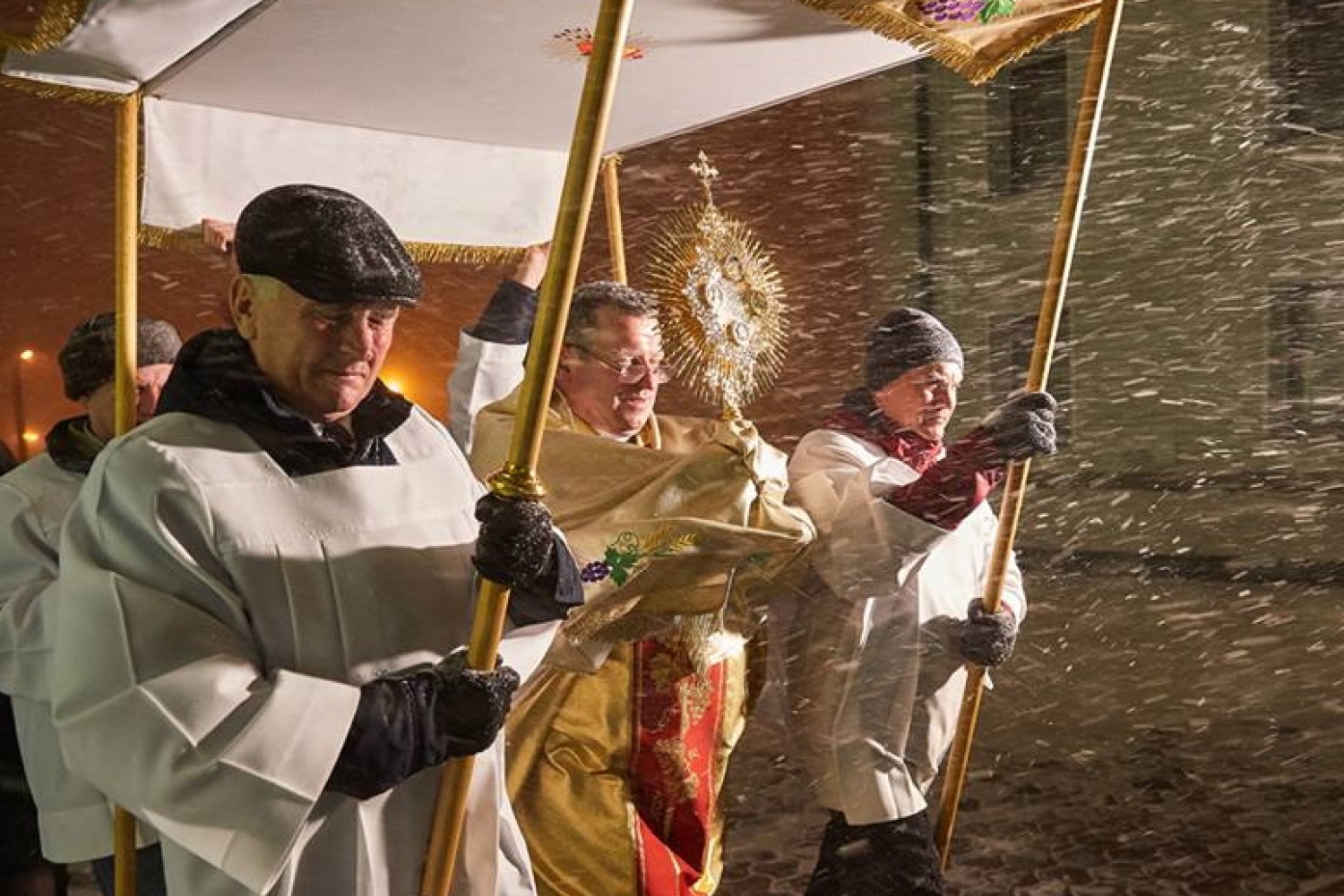 В римско-католической церкви Успения Пресвятой Девы Марии в российском Иркутске Пасху встречали под метелью. В этом сибирском приходе служит священник из Словакии отец Роберт Балек, который опубликовал потрясающие снимки ночного Пасхального шествия с Пресвятыми Дарами на своей странице в Facebook: