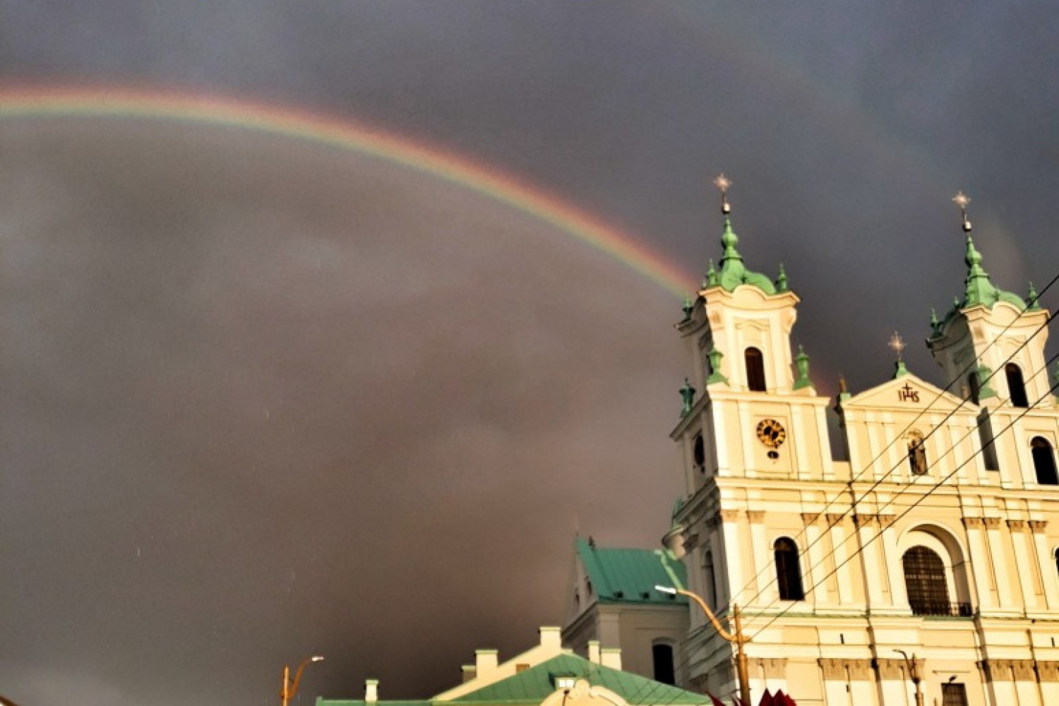 Над фарным костелом засняли яркую радугу