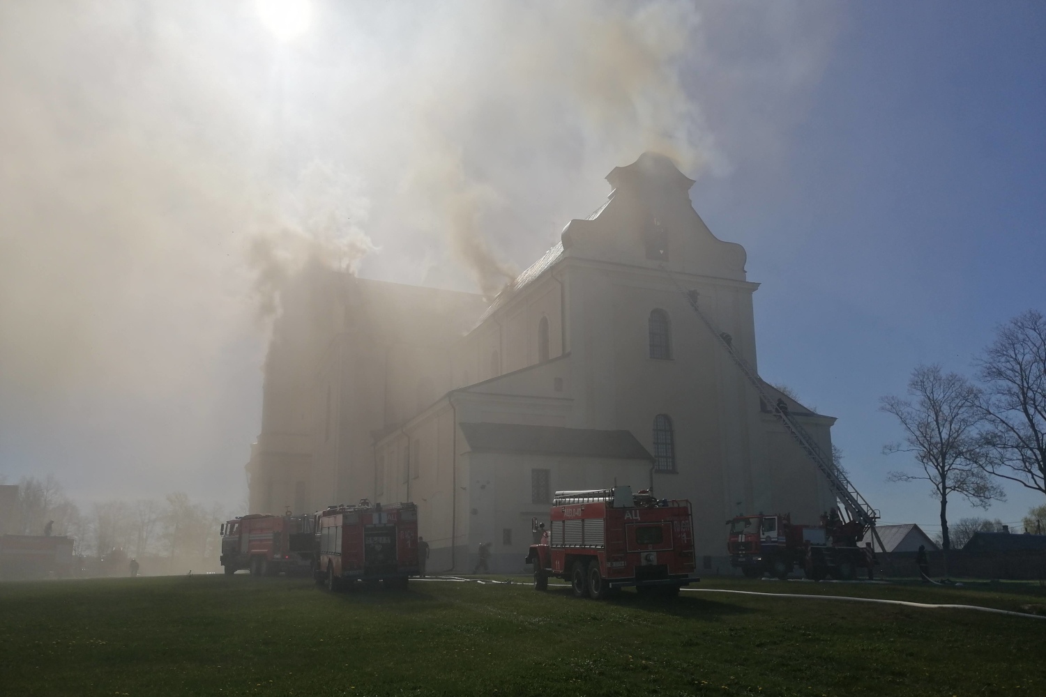 В белорусском католическом Национальном санктуарии Матери Божьей Будславской продолжаются работы по восстановлению храма. Напомним, 11 мая здесь произошел пожар, сгорела крыша костела. По данным на 25 мая, закончилась очистка крыши. Начинаются работы по установке временной кровли - для этого в Будслав доставлено 1 тыс. квадратных метров пленки. Также начинаются работы по закрытию купола и консервации стен.