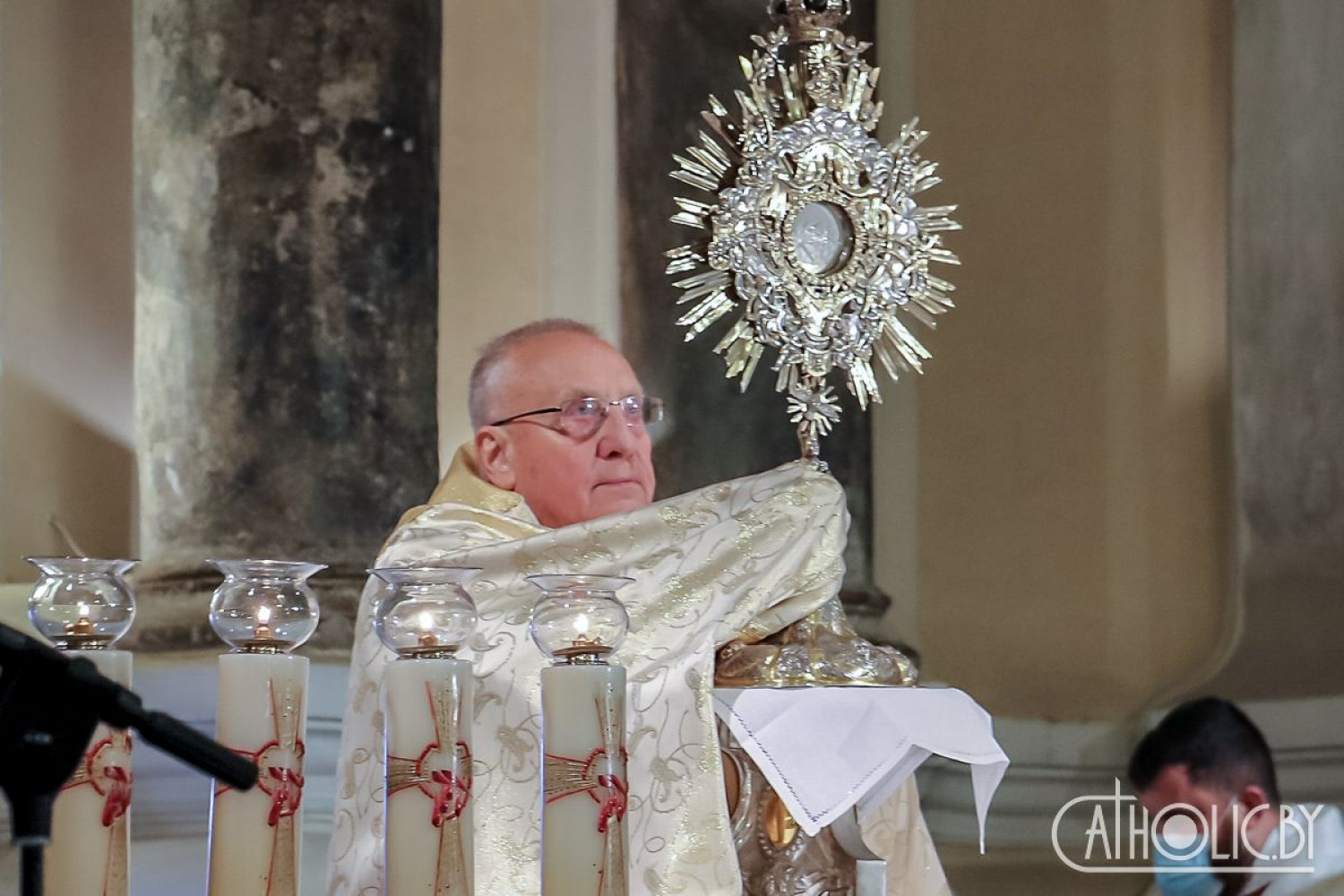 Только в 90-е годы прошлого века костел и монастырь были возвращены законным владельцам - отцам францисканцам и ивенецким верующим. В произнесенной проповеди архиепископ Кондрусевич напомнил, что в прошлом году, когда в Беларуси начался общественно-политический кризис, по приходам во всех епархиях прошла большая перегринация фигуры святого Архангела Михаила, которая была привезена с места его явлений в Италии.