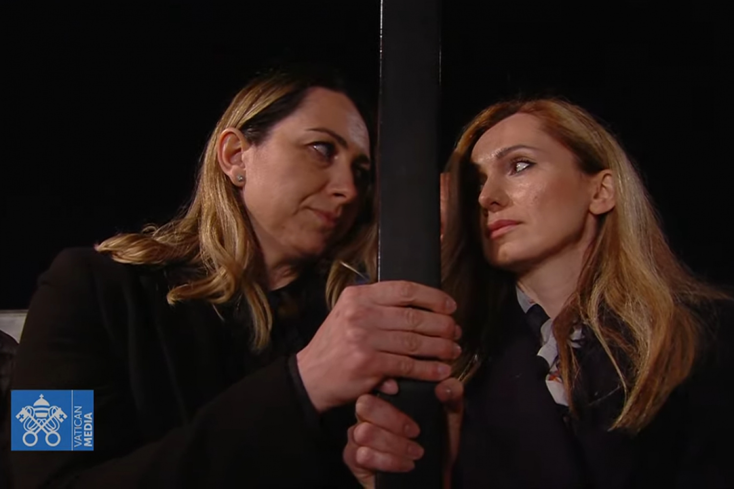 Богослужение Крестного пути в Страстную пятницу, которую католики переживали 15 апреля, прошло в Риме при участии Папы Франциска. Тексты размышлений к стояниям Крестного пути подготовили семьи и по очереди несли крест. Во время 13-го стояния - смерти Иисуса на Голгофе - крест взяли украинка и россиянка. Ирина и Альбина уже много лет живут в Италии и вместе работают в отделении паллиативной помощи.