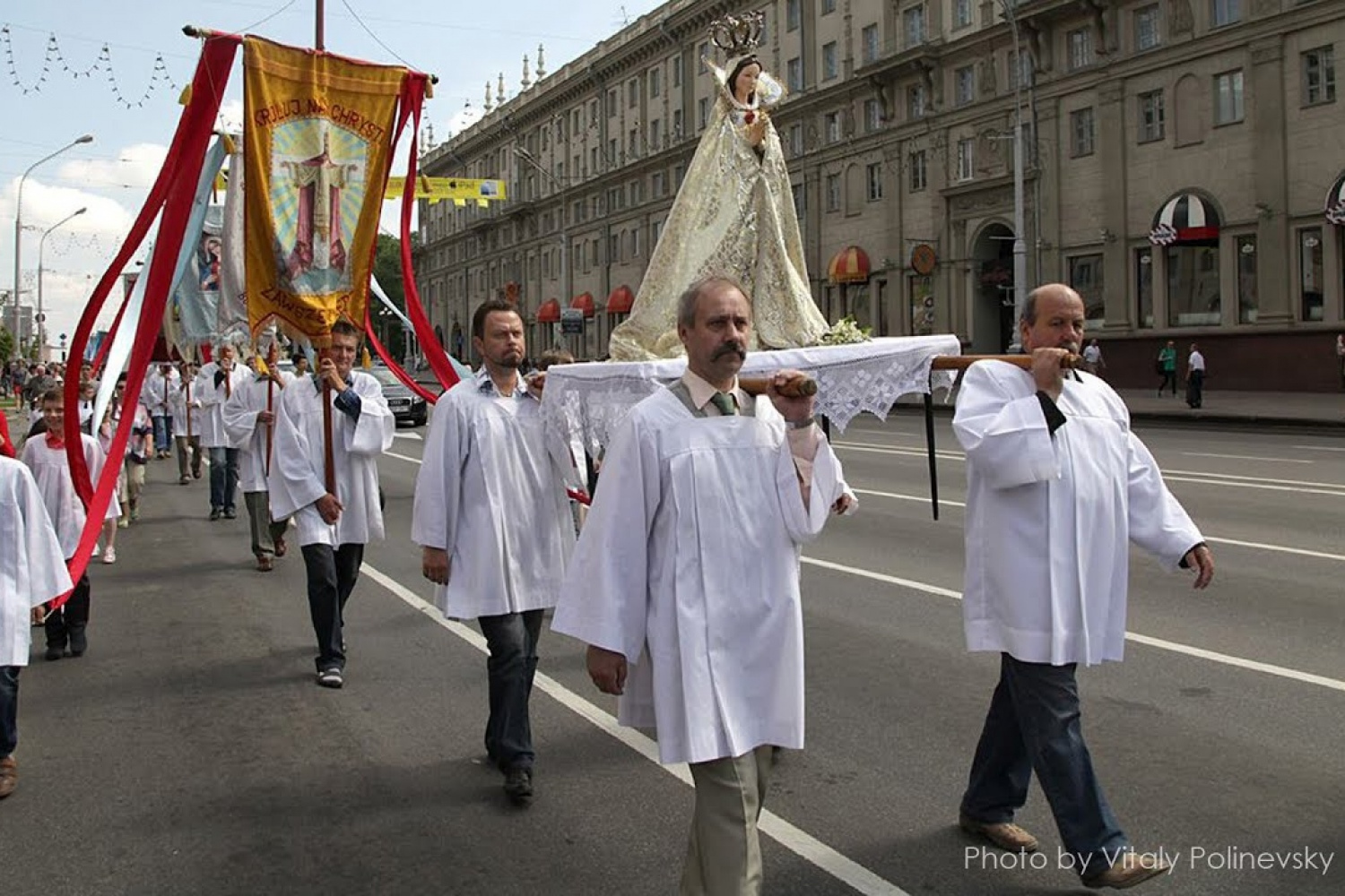 В столице Беларуси 29 мая католические верующие проведут традиционную процессию Божьего Тела. Церковь получила разрешение от городских властей на то, чтобы процессия прошла по центру Минска: от костела Пресвятой Троицы (Святого Роха) на Золотой Горке по проспекту Независимости до костела святого Симеона и святой Елены (Красного костела) на площади Независимости. Об этом сообщили верующим 22 мая настоятели столичных приходов.