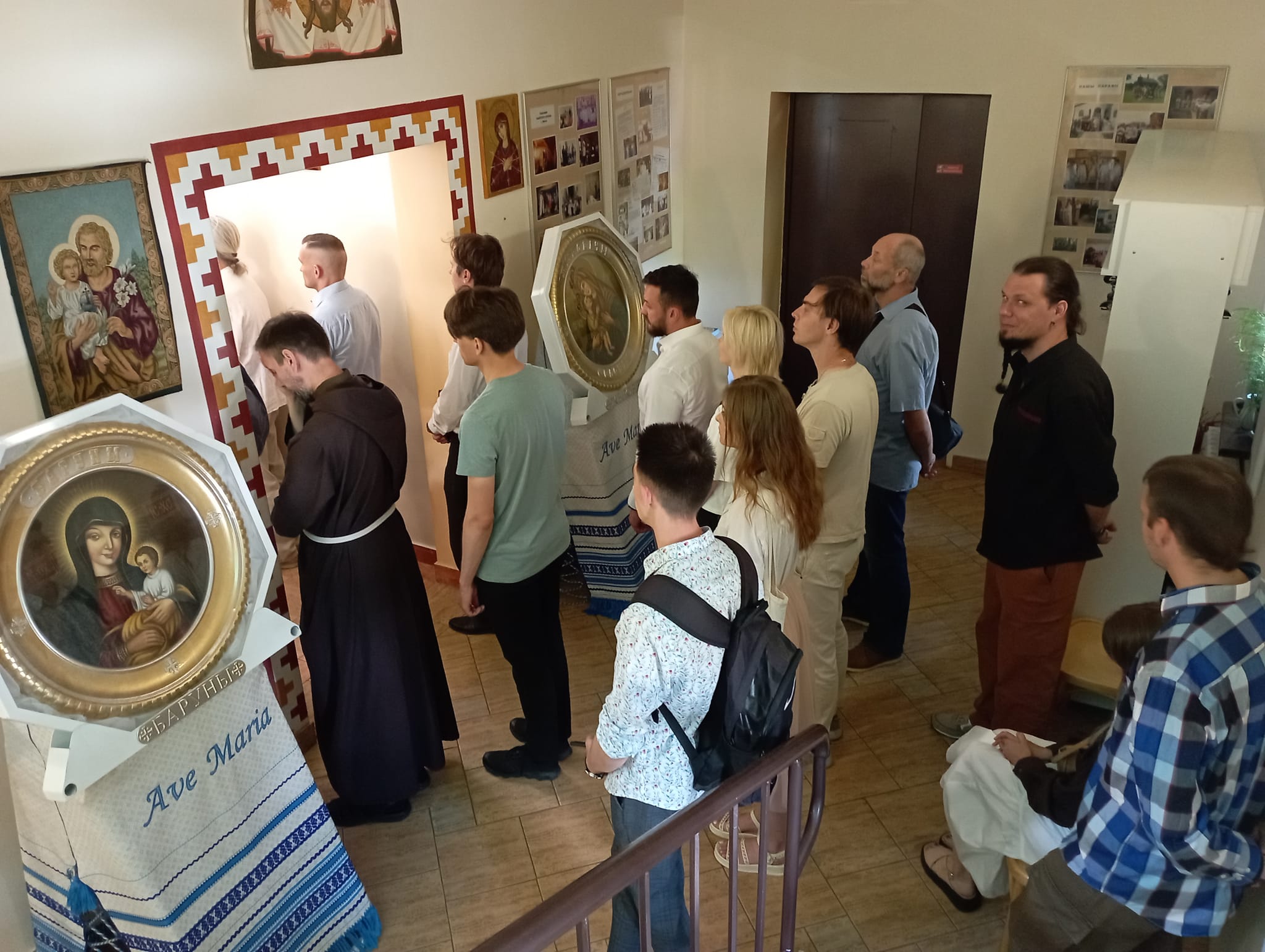 По случаю праздника в Душпастырский центр доставили экспозицию копий Марийных икон, которые «путешествуют» по приходам Беларуси и которые недавно благословил в Ватикане Папа Римский Франциск.