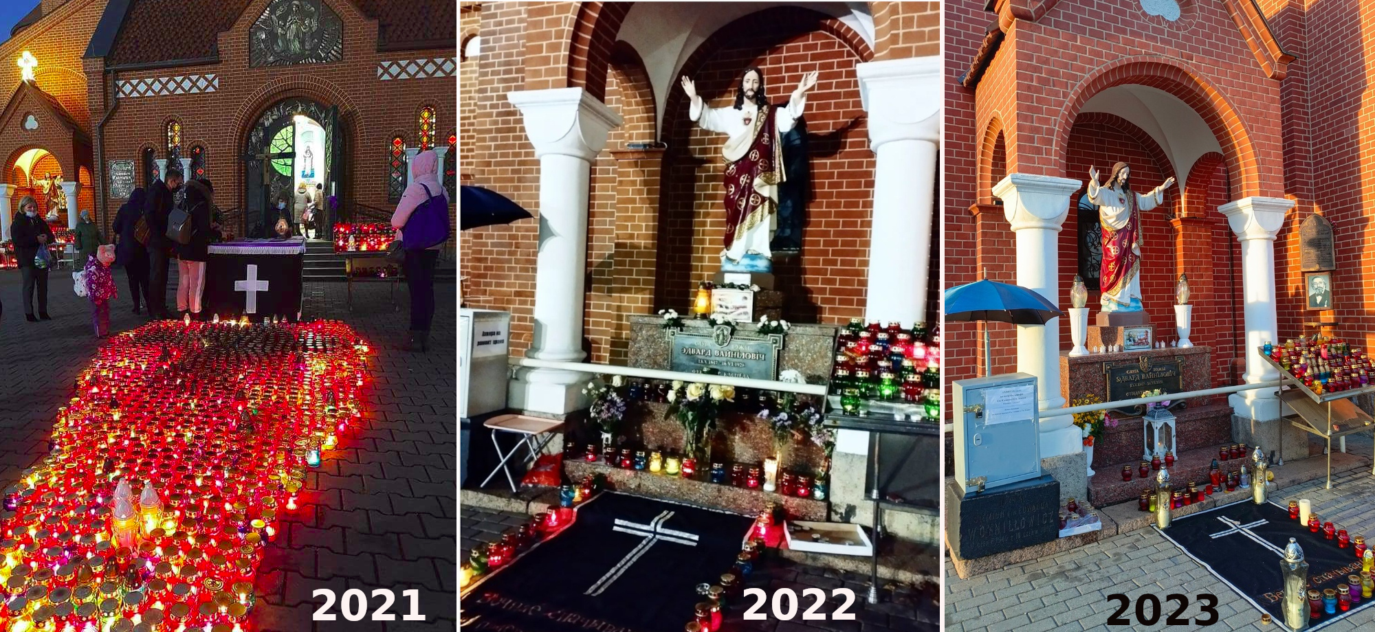 В прошлые годы у входа в Красный костел располагали символический алтарь, вокруг которого находились сотни лампадок, которые ставили верующие в знак молитвы за отошедших в вечность. Тогда на площади Независимости образовывалась целая река света.