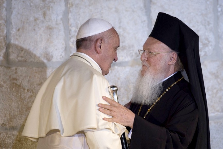 25 мая 2014 г. вечером в помещении Апостольской делегатуры в Иерусалиме состоялась частная встреча между Папой Франциском и Патриархом Варфоломеем I. Ее итогом стало провозглашение совместной декларации, состоящей из десяти пунктов. В ней говорится, что встреча между «епископами Церквей Рима и Константинополя» является «источником глубокой духовной радости» и плодом Божьего Провидения. Папа и Патриарх «с нетерпением ждут того дня», когда две Церкви будут «совместно участвовать в Евхаристической Вечере». Этого можно достичь «через Исповедь единой веры, постоянную молитву, внутреннее обращение, обновление жизни и братский диалог». Причем, целью богословской составляющей диалога не должен быть поиск какого-то компромисса, но углубление понимания всей правды, которую Христос дал Своей Церкви.