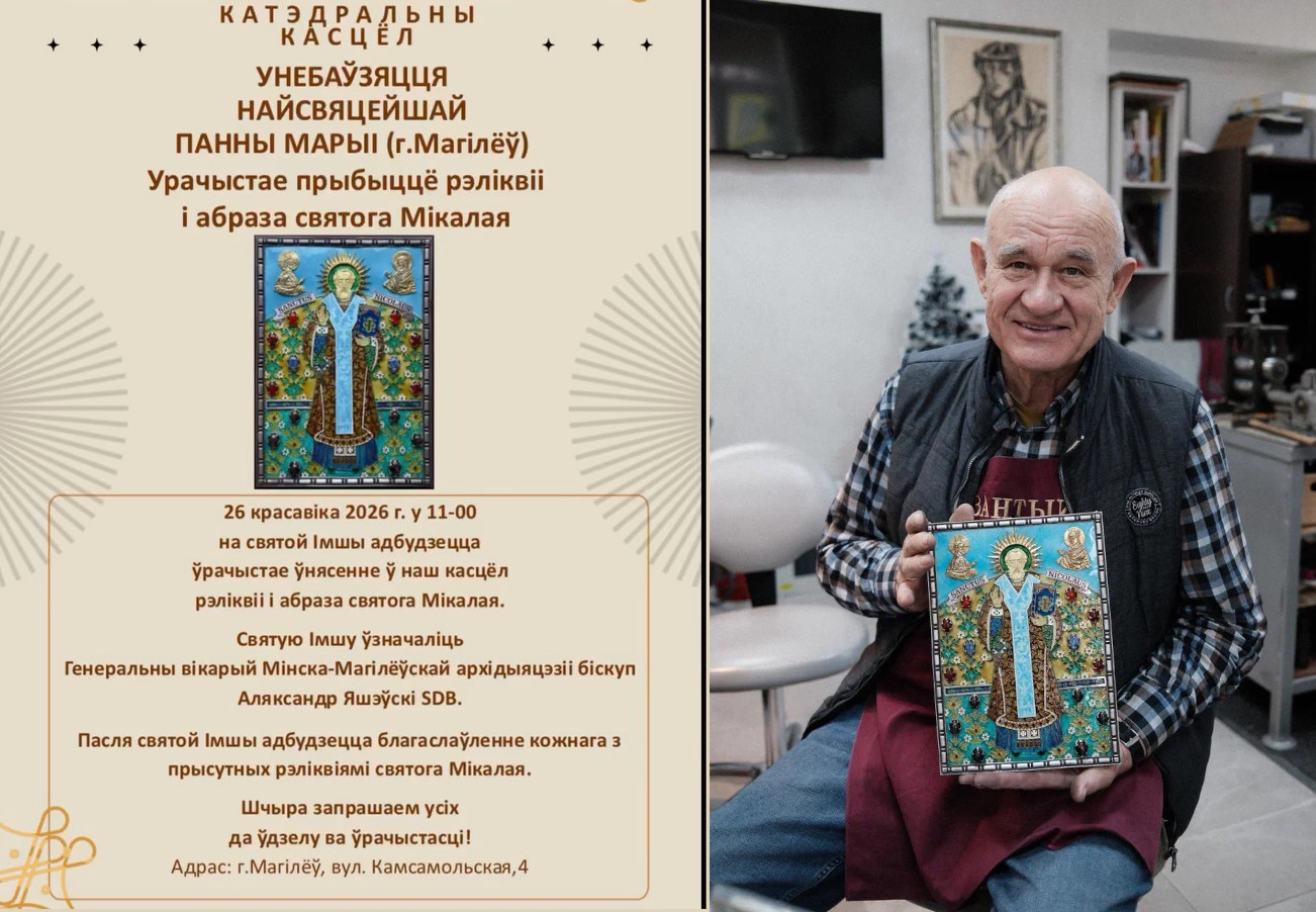 Торжественное внесение иконы святого Николая и его реликвий в кафедральный костел Могилева анонсировал на своей странице епископ Александр Яшевский. Подробностей в объявлении не было, но мы заметили, что икона, которая появится в могилевском костеле, – из той самой серии 12 ценных «икон-сестер», о которых мы рассказывали.