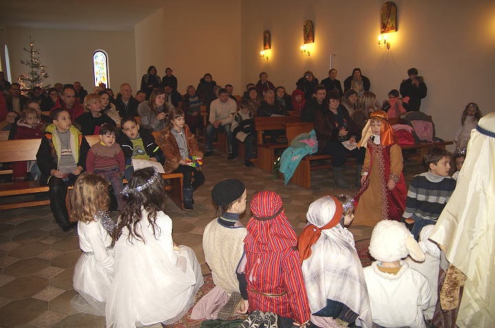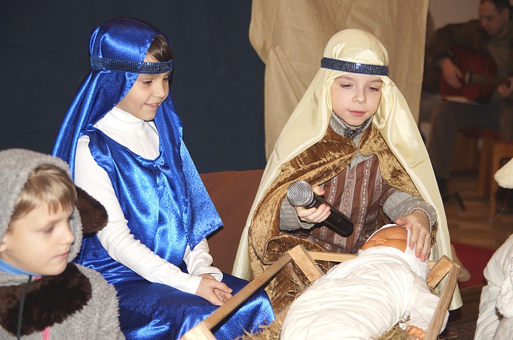 По сценарию, одна девочка ничего не знала о Боге и о празднике Рождества. Поэтому для нее дети своим языком рассказали эту радостную историю, произошедшую в Вифлееме.
