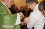 Молодая семья принесла в храм своего первенца, чтобы просить о благодати Святого Духа и даре Вечной Жизни.