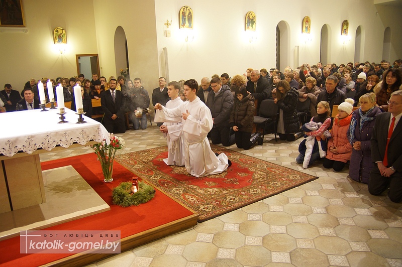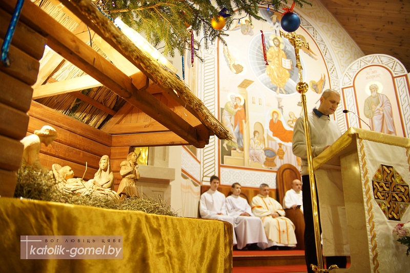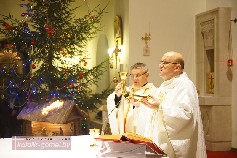 В полночь 25 декабря в гомельской римско-католической церкви началась первая торжественная Рождественская месса, которую возглавил настоятель прихода отец Славомир Ласковски.