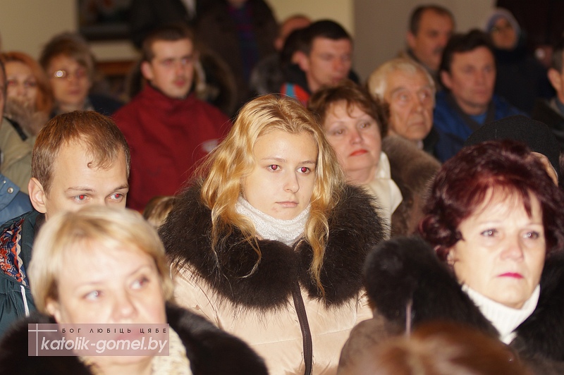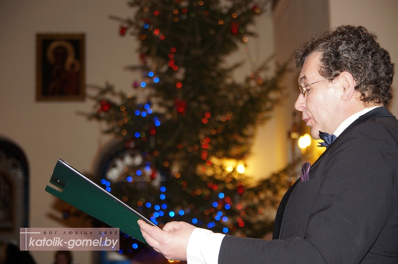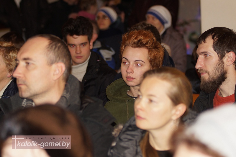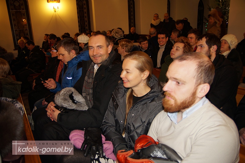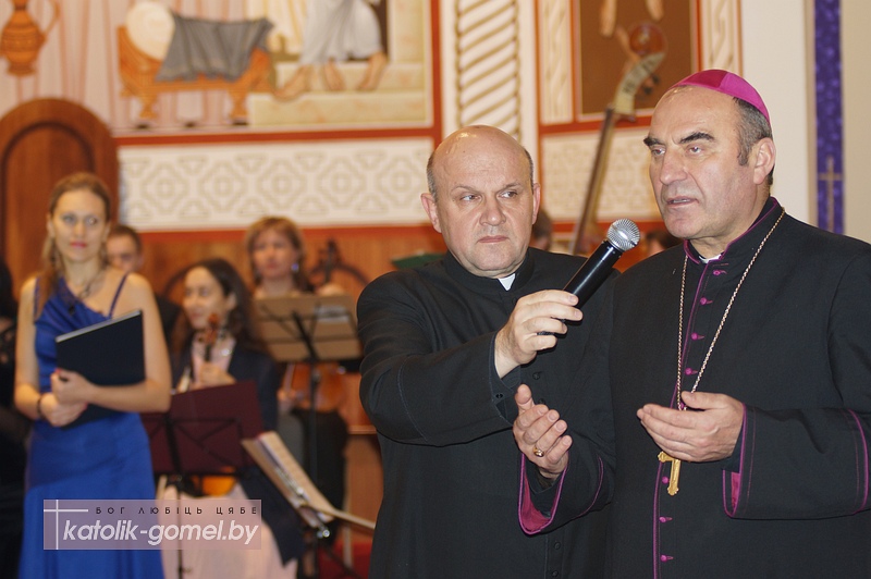 Зал гомельского костела встретил музыкантов полным аншлагом. С приветственным словом к зрителям и музыкантам обратился епископ Пинский Антоний Демьянко, который в этот день посещал Гомель и ранее стал зрителем детского спектакля-«Вифлеемки».