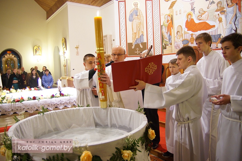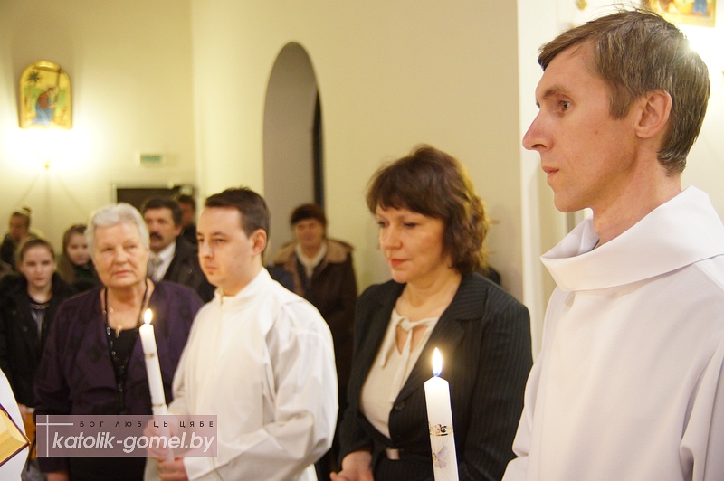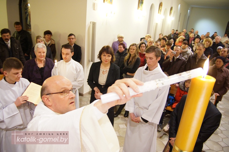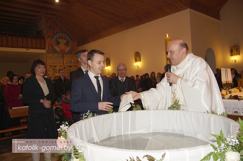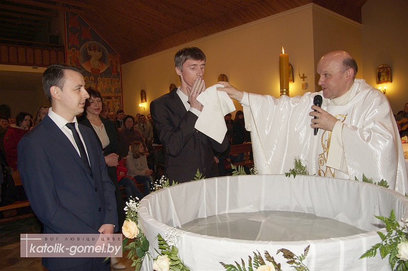 В Пасхальную ночь, когда гомельские католики собрались на праздничное ночное бдение, приход пополнился тремя новорожденными девочками и двумя взрослыми мужчинами. Павел и Дмитрий стали христианами-католиками, самостоятельно приняв это решение в осознанном возрасте. Разными путями Господь привел мужчин к этому решению. Правда, просьбу о крещении, с которой они пришли в католическую церковь, настоятель выполнил не сразу - около года они посещали занятия «Школы веры» и слушали катехезы, чтобы должным образом подготовиться к крещению.