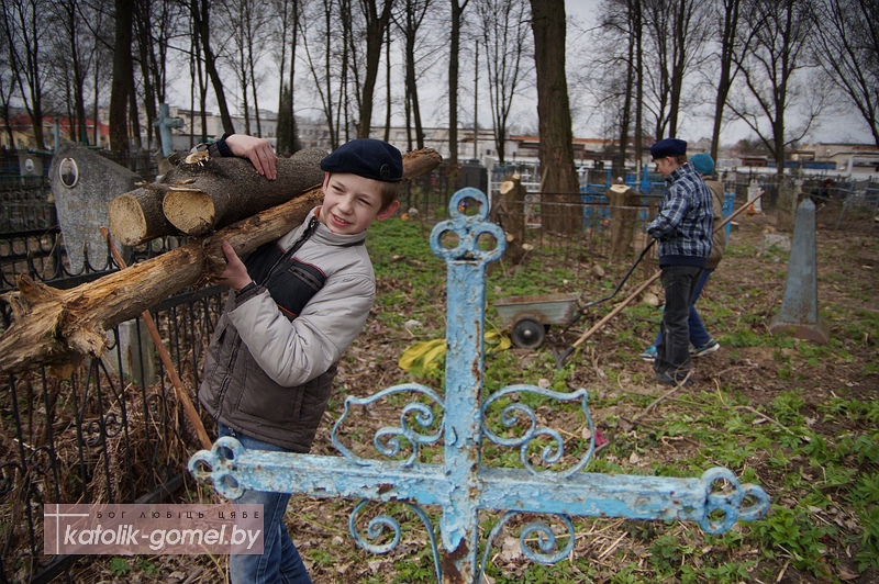 18 апреля - когда в Беларуси был объявлен Республиканский субботник - в Гомеле прошел следующий этап благоустройства Прудковского кладбища. Такой своеобразный межконфессиональный субботник провели Гомельская иудейская религиозная община «Бейт Яаков», областная еврейская община «Ахдут», государственное предприятие «Гомельский спецкомбинат» и христианские верующие, в том числе скауты римско-католического прихода Рождества Божьей Матери.