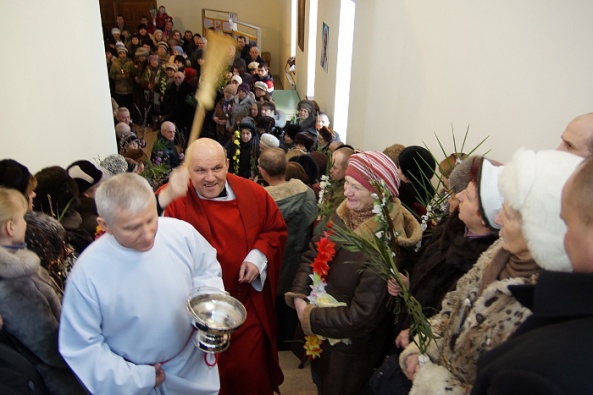 К празднику мальчики-скауты собрали вербы, а девочки-скаутки сделали из них букеты и давали прихожанам за пожертвования. Из-за метели и мороза в Гомеле, освящение верб проводилось внутри храма.