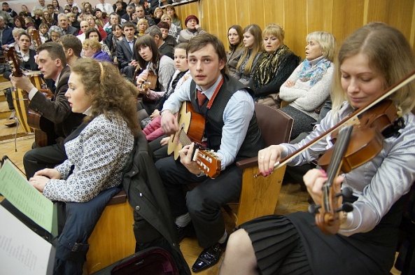 Во время всенощного бдения торжественно крестили четырех детей: Станислава, Агнежку, Илью-Давида и Викторию.