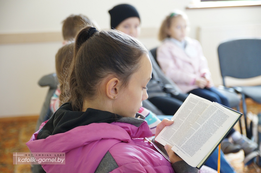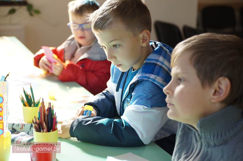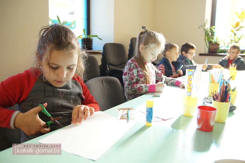 В воскресенье в гомельской римско-католической церкви начались занятия в Воскресной школе, где в духе любви, без строгих требований и сложных правил детей в доступной игровой форме учат основам христианской веры. Ребята рисуют, поют, готовят театральные сценки. Одна из групп детей начала подготовку к принятию Первого причастия.