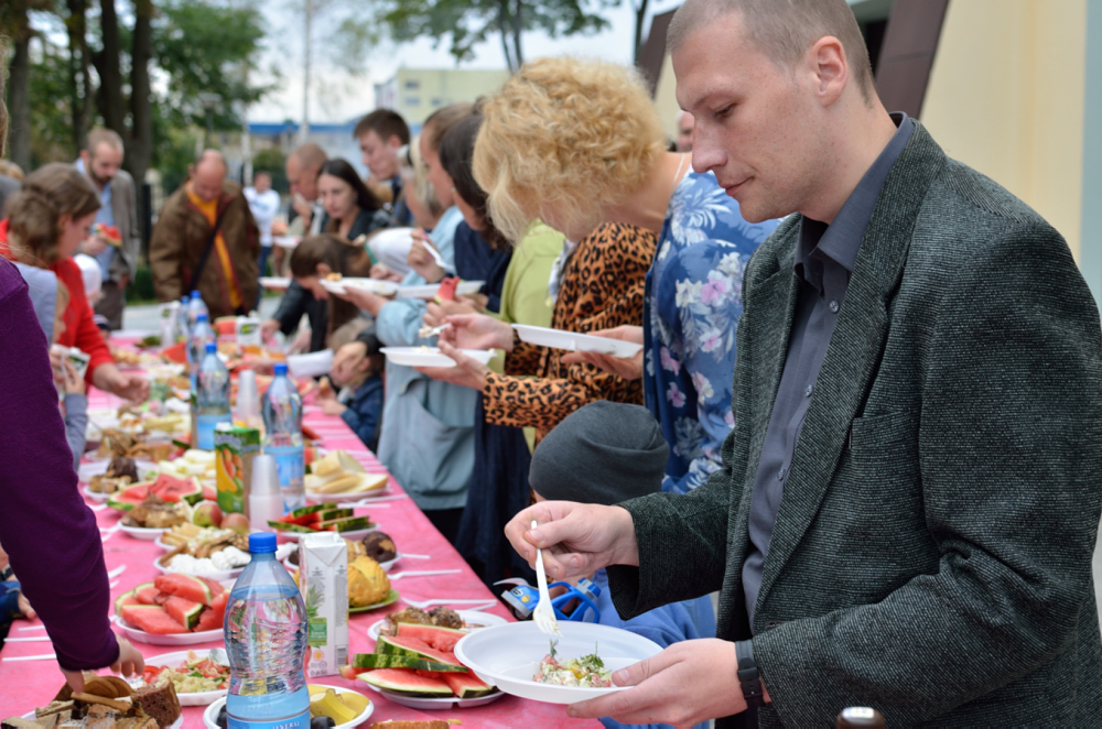 С Рождества Девы Марии началась история Спасения, в ее честь утром с участием многих священников прошла праздничная святая Месса, а после Вечерних хвал во дворе костела устроили «агапу» - так с древности называют общую трапезу христиан первых веков. Прихожане и гости принесли к столу собственные блюда, салаты и сладости, а шашлыки, колбаски на гриле, другие угощения организовал настоятель. Для маленьких детей развлечения устроили скауты.