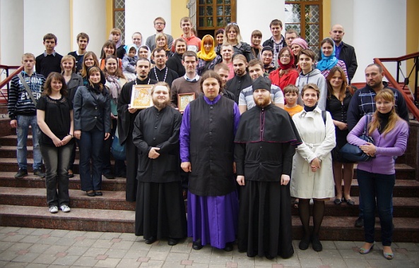 Участников встречи приветствовал православный епископ Гомельский и Жлобинский Стефан, который подарил брату Бенуа копию иконы Юровичской Божьей Матери, почитаемой и православными, и католиками, а также призвал верующую молодежь чаще собираться вместе.