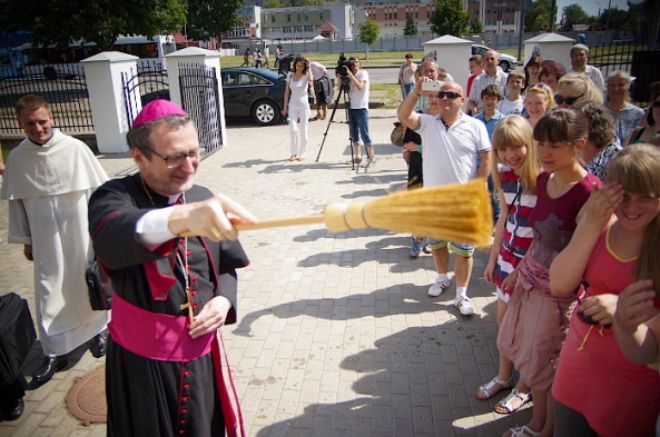 Свое общение с гомельскими католиками высокий гость начал с улыбки. Окропляя верующих святой водой, он пошутил: «Это святая вода против комаров!» (кусачие насекомые в последние дни заполонили Гомель - ред.).