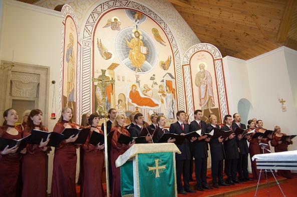 Капелла под руководством дирижера Николая Козлова исполнила известные произведения русских и западноевропейских композиторов, духовные и народные песни.