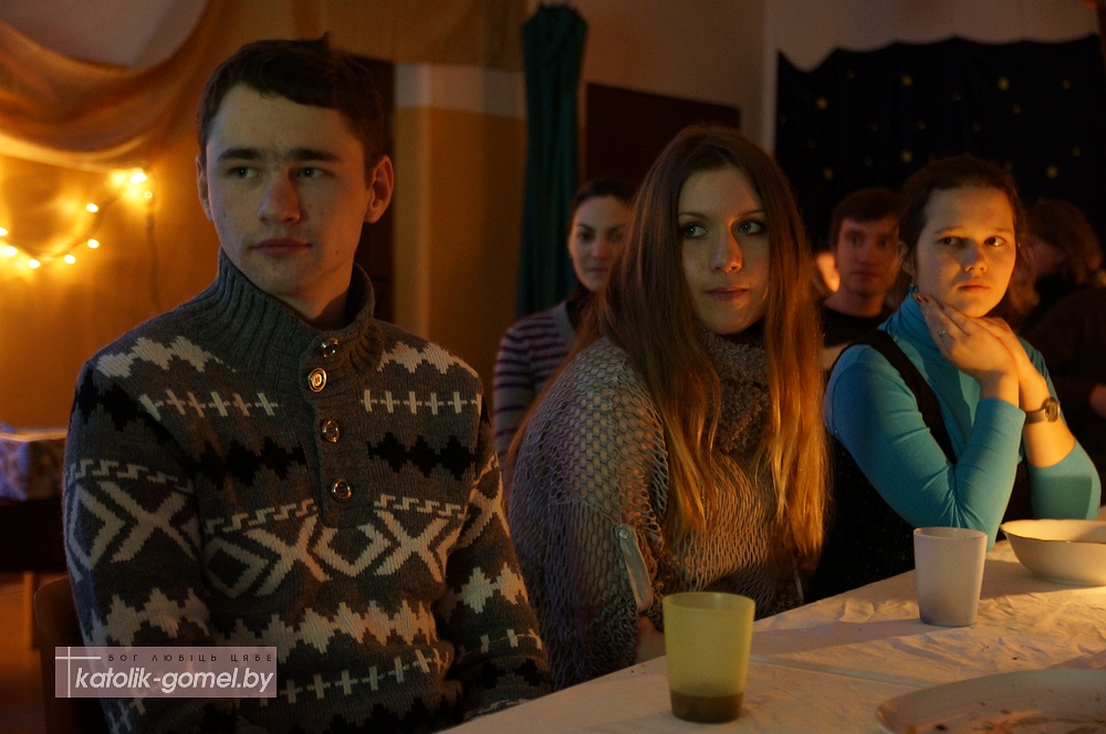 На встрече собрались почти 50 молодых людей из Гомеля, Светлогорска, Рогачева, Мозыря и Наровли. Администратор гомельского католического прихода Успения Пресвятой Девы Марии отец Андрей Шут, который проводил встречу, напомнил, что за праздничной мишурой важно не забыть о главном герое торжества - Иисусе Христе, о том, почему и ради чего Он пришел в мир: из безграничной любви к каждому человеку, чтобы спасти его от грехов.