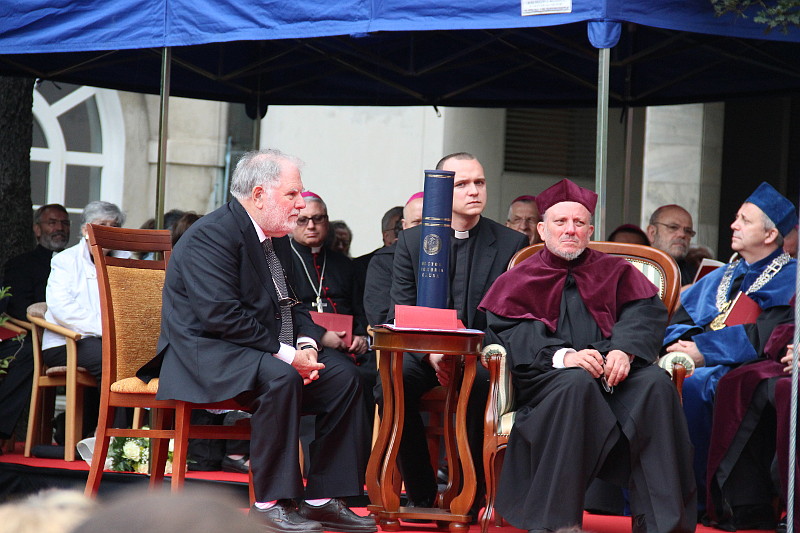 На следующий день части паломников удалось побывать на очень красивой церемонии. Кико Аргуэльо был удостоен звания почетного доктора Католического Университета Люблина (KUL) за его выдающийся вклад в деле обновления Костёла после II Ватиканского Собора, новой евангелизации, новой эстетики и, прежде всего, за большой вклад в формировании единства христианской семьи в современном мире. Новый доктор прочитал лекцию - керигму, которую с большим вниманием слушал весь Сенат Католического Университета, раввины, присутствовавшие на церемонии, и более тысячи зрителей. "Это современный пророк", - сказал кс. проф. Stanisław Zarzycki во время вручения титула.