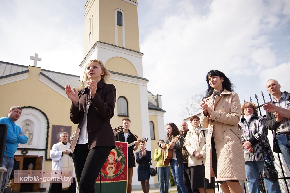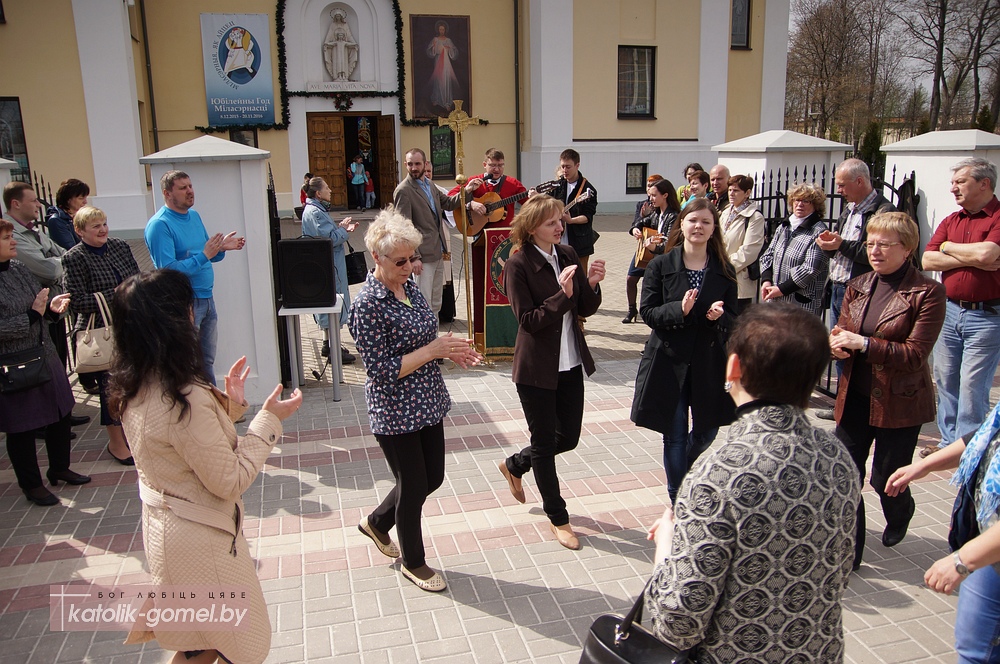 Каждое воскресенье Пасхального времени (до 8 мая включительно) Неокатехуменальные общины Католической церкви в Гомеле проводят евангелизацию на улице. Во всем мире в это время католики Неокатехуменального пути выходят на центральные площади своих городов, чтобы нести прохожим Благую весть о Воскресении Иисуса Христа, Его любви и победе над смертью. По белорусским законам без разрешения властей проводить массовые мероприятия на улице запрещено, поэтому в Гомеле евангелизация проходит на прилегающей к храму территории. Он находится на центральной улице города, благодаря этому немало прохожих могут услышать о любви Бога к каждому человеку.