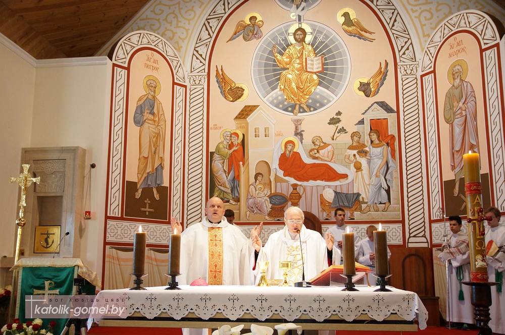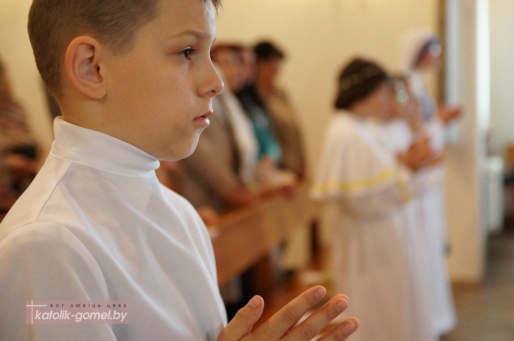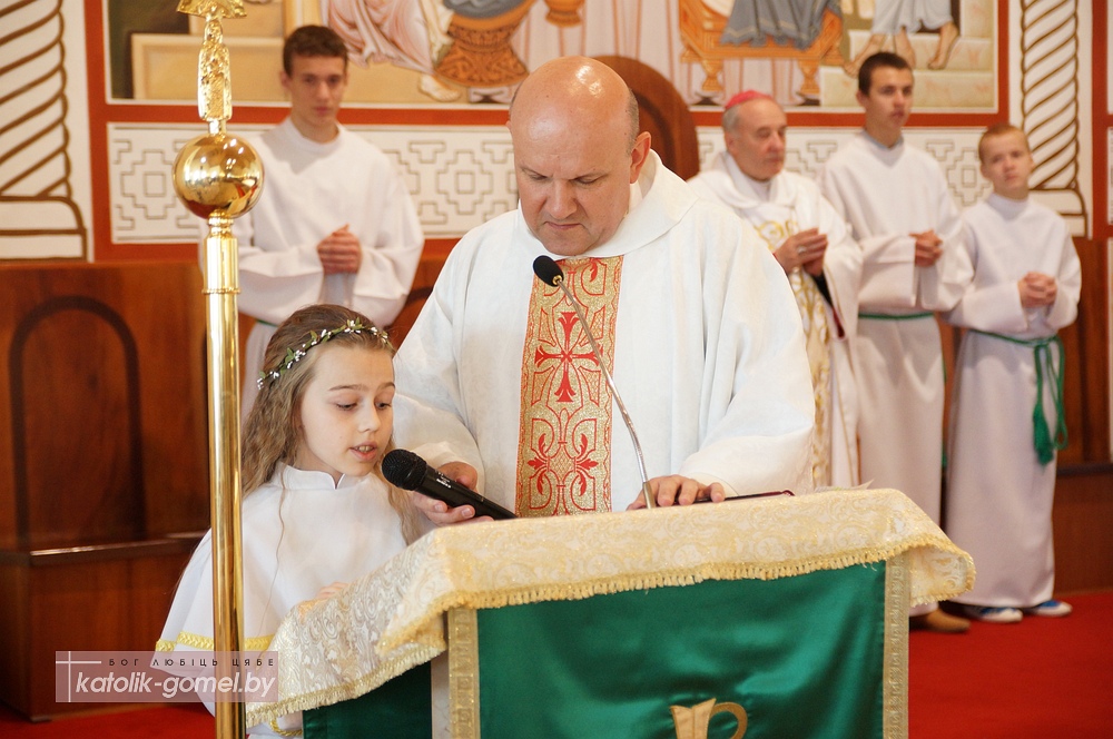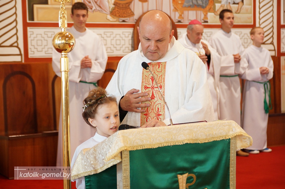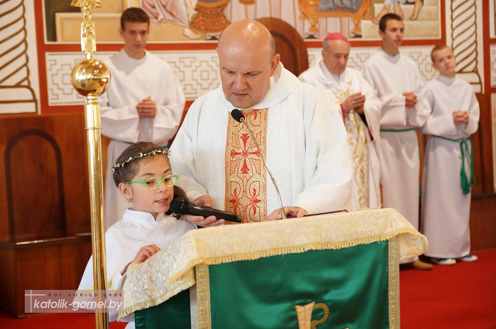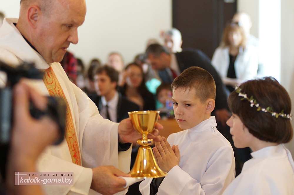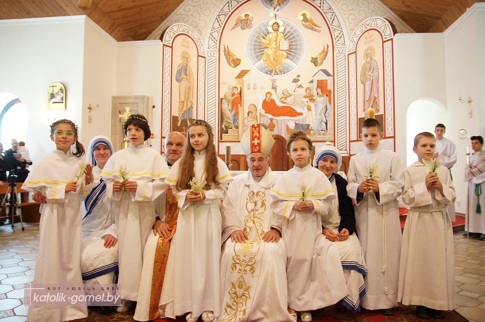 22 мая, в торжество Пресвятой Троицы, в гомельском римско-католическом храме епископ Казимир Великоселец уделил таинство миропомазания молодежи и взрослым, а также Первое Причастие - детям. Таинство миропомазания приняли почти 20 человек, а Первое Причастие - четыре девочки и два мальчика. Кстати, в тот же день впервые принимала Причастие в Католической Церкви и взрослая девушка.
