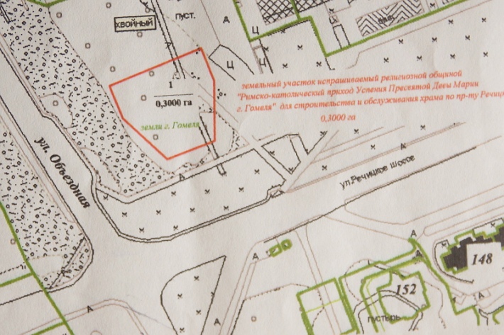 «Информируем вас, что Президент Республики Беларусь согласовал место размещения земельного участка площадью 0,3 га религиозной общины «Римско-Католический приход Успения Пресвятой Девы Марии в г. Гомеле» для строительства в установленном порядке храма по проспекту Речицкому в Гомеле». В письме также говорится о том, что Гомельский горисполком уже проинформирован о данном решении.