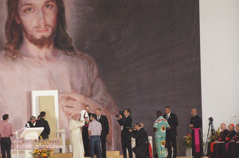 На поле никто не мешал молодежи что есть силы выражать свою радость. Здесь, да и во всем городе, мир, как будто собранный в одном месте, стал другим: российские флаги развеваются рядом с украинскими, китайские католики танцуют вместе с американскими, давление политики здесь потеряло свою силу.