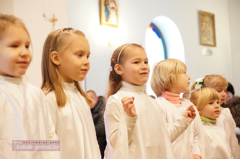В завершение Рождественского периода в Католической церкви дети прихожан гомельского костела показали традиционную Рождественскую сценку. С помощью сестер ордена Матери Терезы дети рассказали о Рождестве на понятном для всех языке, с песнями и танцами. А настоятель прихода отец Славомир напомнил, что Вифлеем находится в сердце каждого человека, именно там хочет родиться Иисус Христос. И главный подарок на Рождество делает сам Господь - Он дает нам любовь и Вечную жизнь.