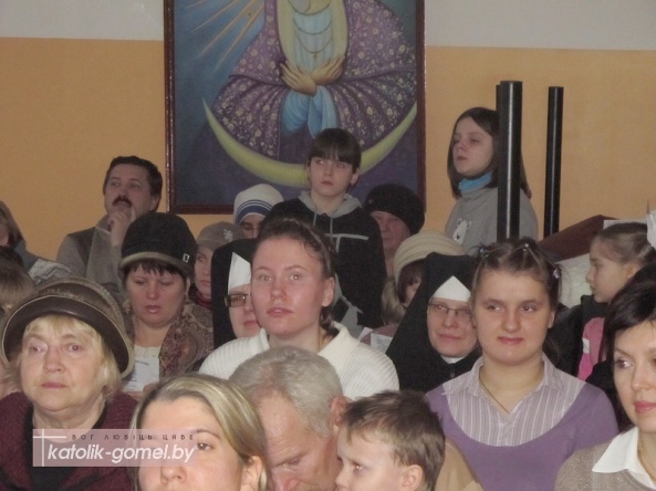 На утренник в Гомельской детской деревне для сирот-инвалидов к ребятам приехало много гостей: представители властей, БКМ "Каритас-Милосердие", православный священник, гости из Польши. Праздник прошел очень весело, было много различных конкурсов, танцев, песен. Утренник получился чудесным благодаря совместным усилиям музыкального руководителя детской деревни и волонтеров из машиностроительного колледжа, которые выступали для ребят в ролях сказочных персонажей, были очень открыты в отношении с детьми, старались каждому уделить внимание: обнять или потанцевать рядом, взять на руки. Затем ребята получили сладкие подарки.